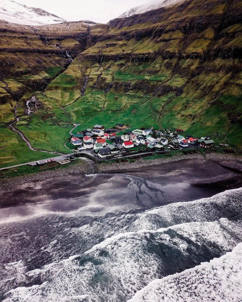 There are no more than 55 houses in the village and even more small streams flowing down the mountains. The sight is especially impressive on rainy days. Tjørnuvík is a destination that travelers never regret prioritizing on their vacation in the Faroe Islands.