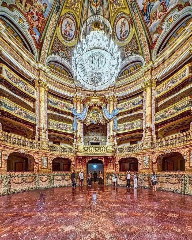 The palace has 5 floors, 1,200 rooms, including two dozen state apartments, 1742 windows, 34 staircases, 1026 fireplaces, a large library, and a theatre modelled after the Teatro San Carlo of Naples.Â